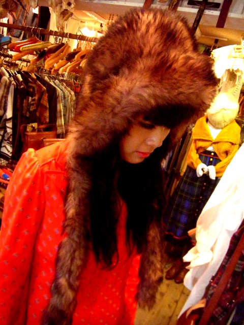 ファー帽子です。ボリュームのあるもの中心にインパクトのあるものが揃っています。