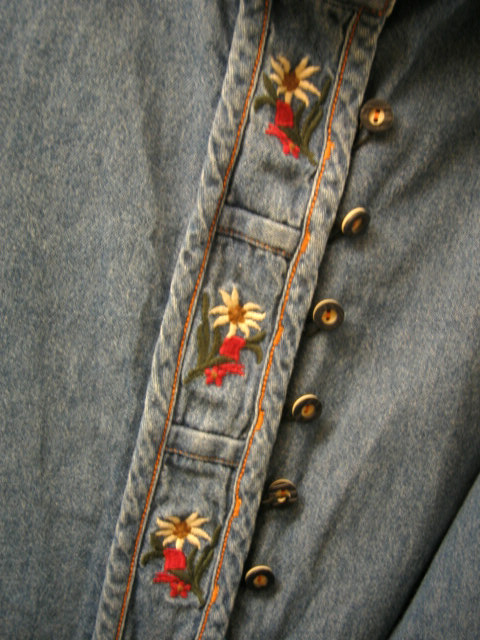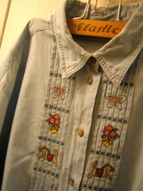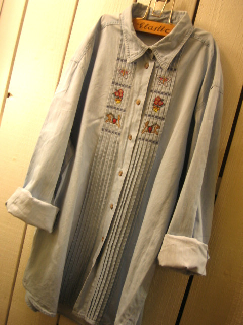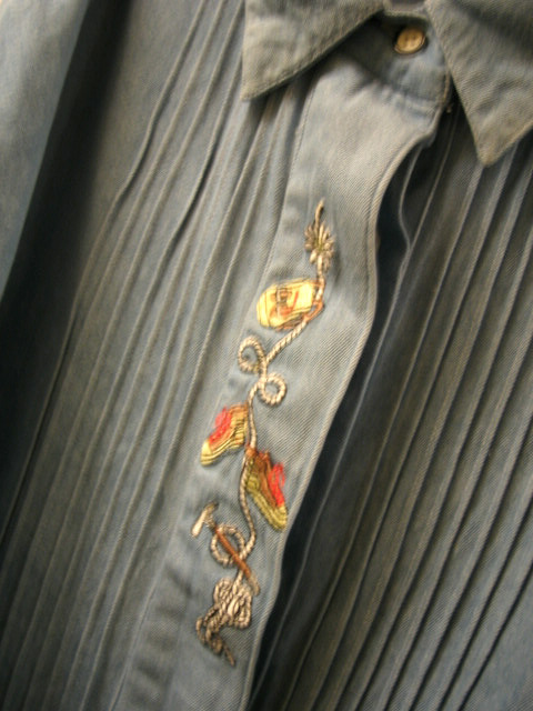 こちらはあまり見ないシャンブレー地のチロルブラウス&シャツ。