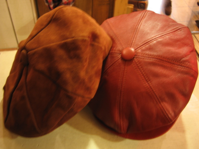 レザーやスウェードの秋帽子。