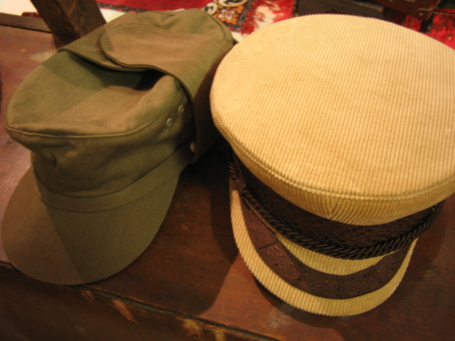主に東ドイツ軍のミリタリーキャップ。今年はとても人気です。