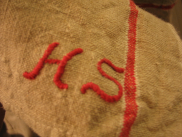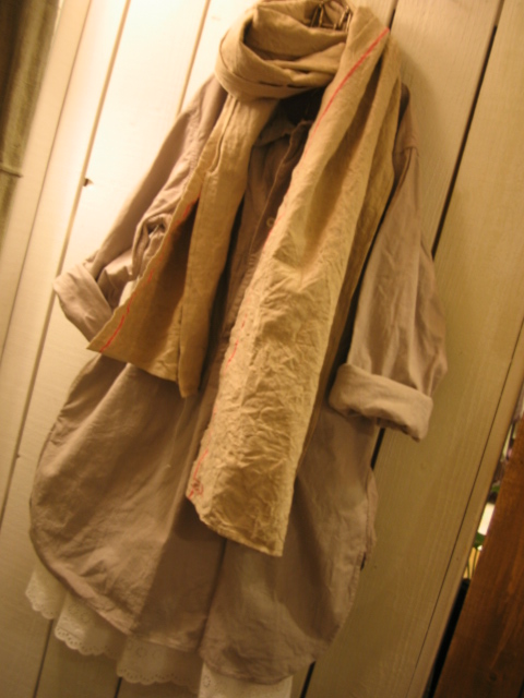 ストールは古いリネンのファブリックから作ったもので、