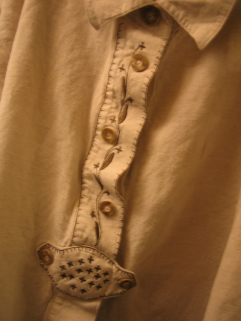 リネンかリネン混紡で前立てがとても可愛い。