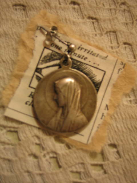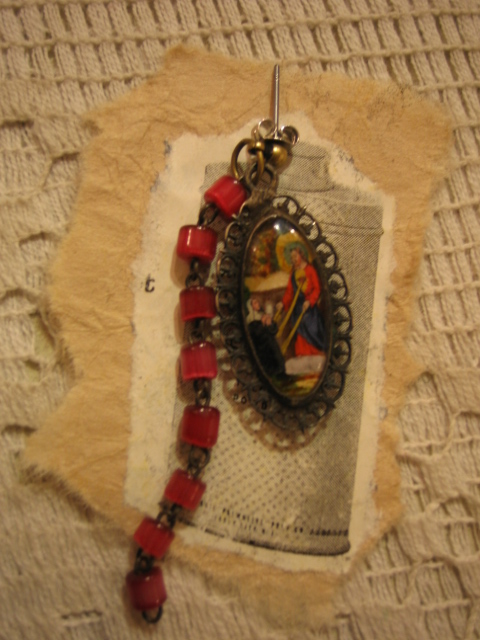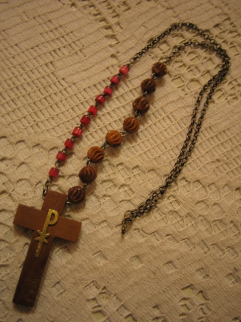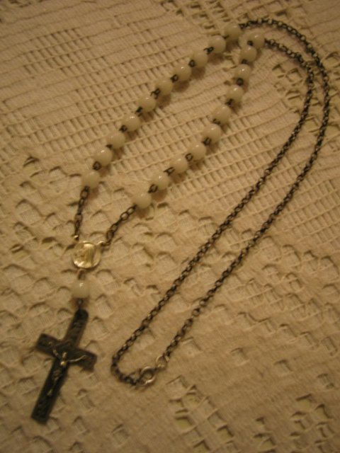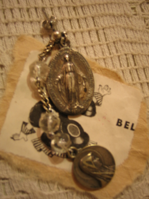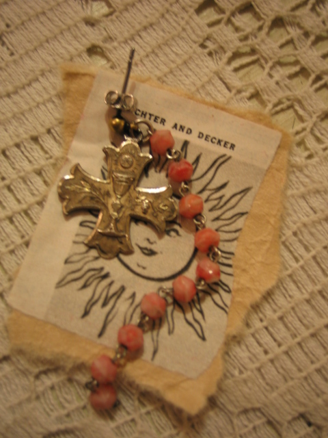 蚤の市を廻っているとたまに、壊れた古いロザリオを売っていたりします。で、そのパーツ等を主に使って作ったピアスとネックレスです。