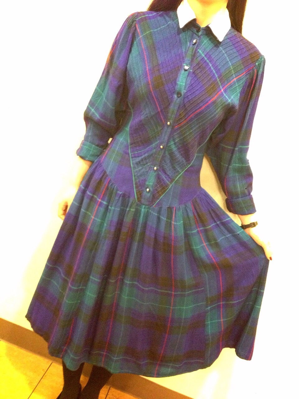 胸元で切り替えられたチェックも素敵です。