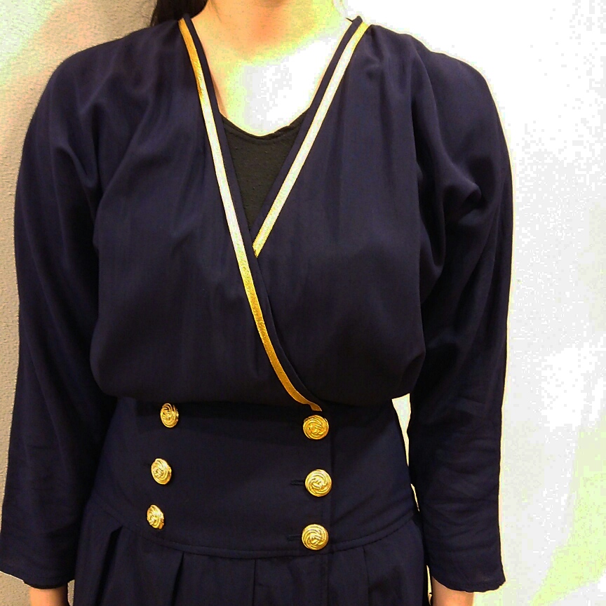ネックライン,ダブルボタンが目を引きます